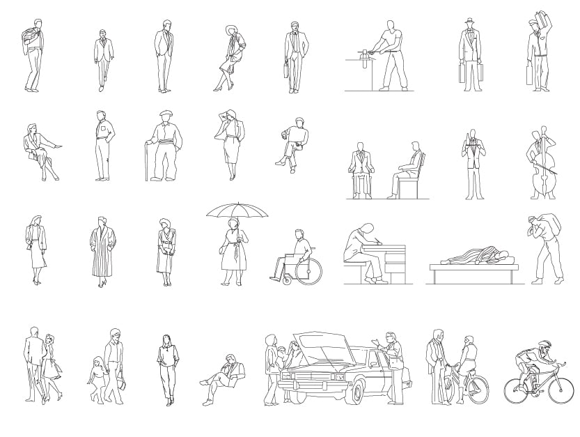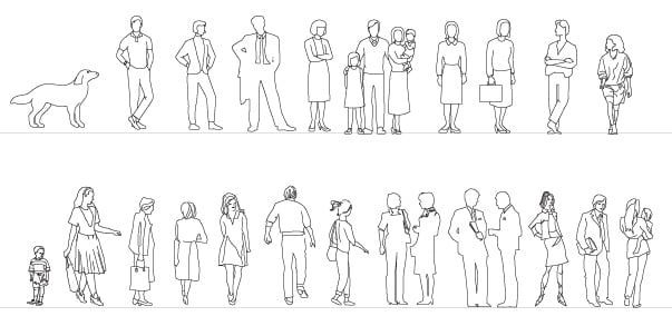 1000+ Human figures in Plan, Elevation, Silhouette in dwg and illustrator file format for your architecture, interior or art projects. It’s free to download, however, I appreciate any donation (just put in an amount you would like to pay) to support me in creating more products.